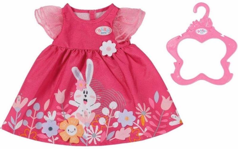 - Das BABY born Kleid Blümchen ist mit 3D-Applikationen von Blumen und einer Blume am Übergang zwischen Oberteil und Rock gestaltet.