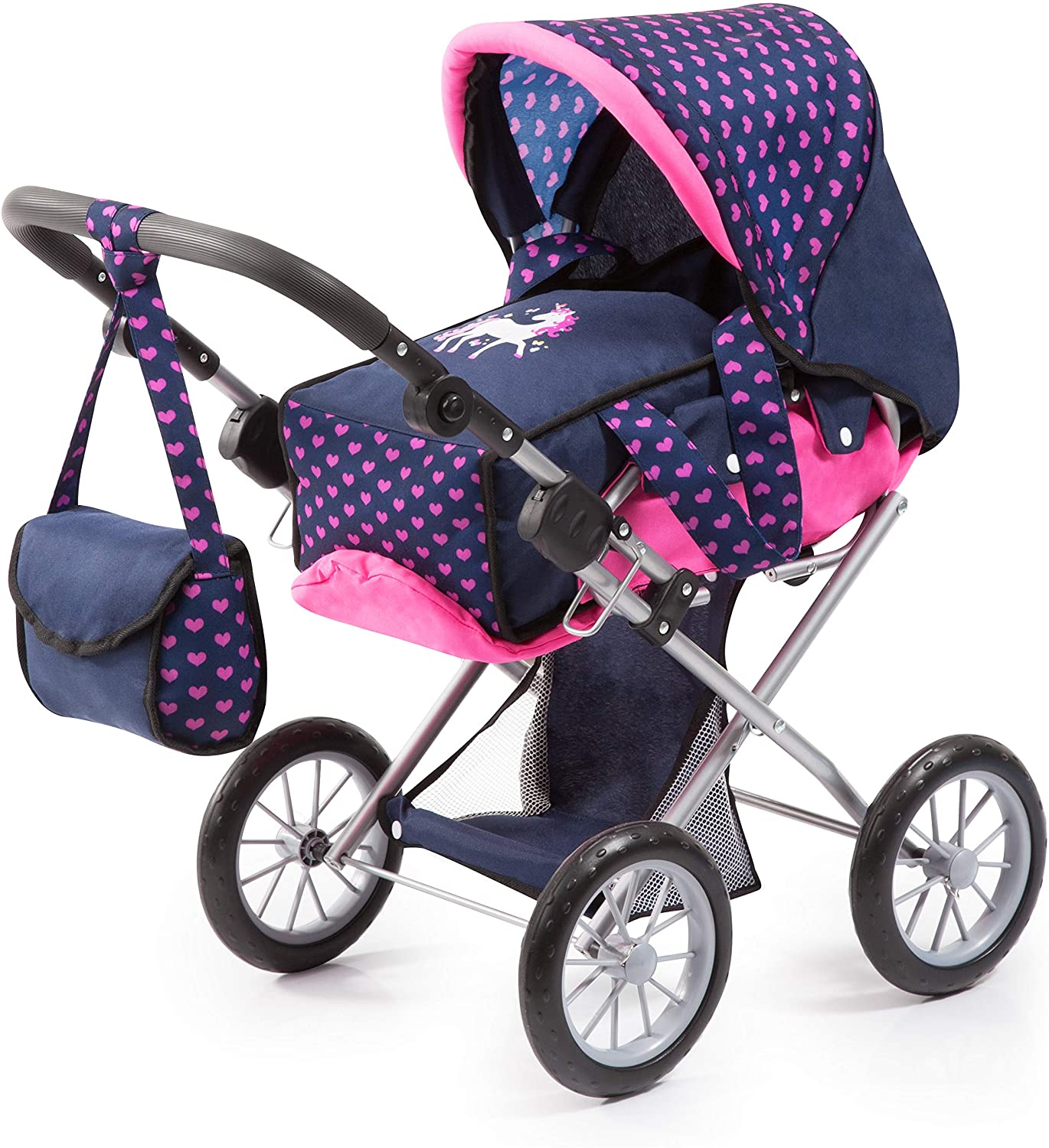 | Name | Bayer Design 13654AA City Star in modernen Einhorn Design, Kombi Puppenwagen, mit herausnehmbarer Tragetasche und Umhängetasche, höhenverstellbar, für Puppen bis 46cm, blau rosa |