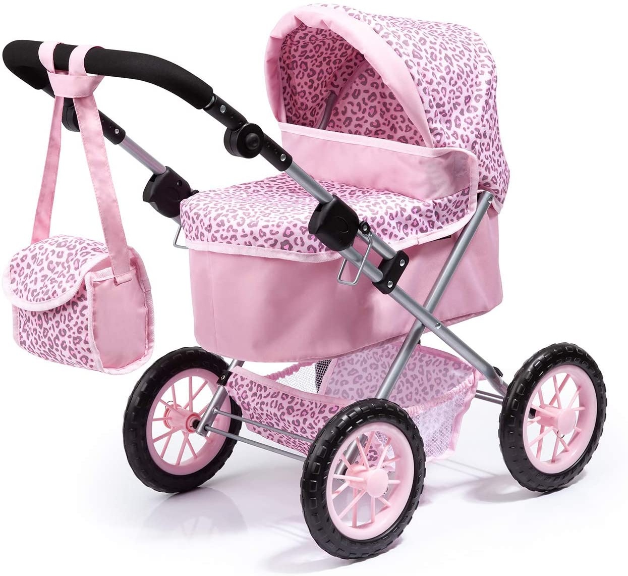 | Name | Bayer Design 13002AA Puppenwagen Trendy, höhenverstellbar, zusammenklappbar, mit Umhängetasche und Einkaufskorb, pink, Leopard |