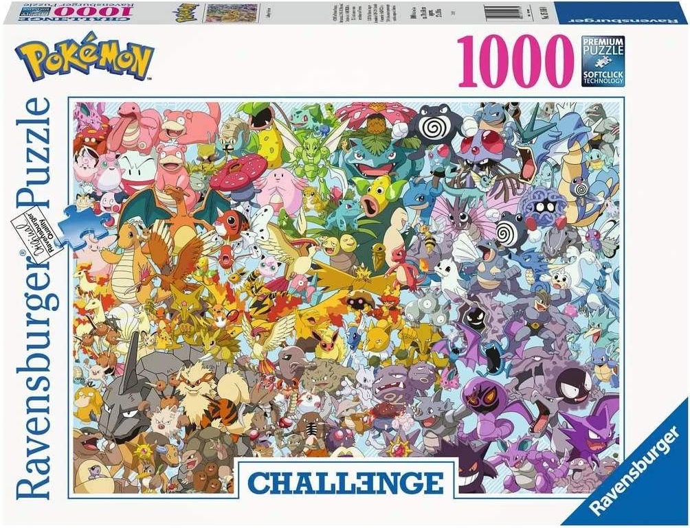 Das Ravensburger Puzzle mit 1000 Teilen, Challenge Pokémon, bietet eine tolle Möglichkeit zur Entspannung und zum Gehirntraining. Es ist besonders für Erwachsene und Kinder ab 14 Jahren geeignet und stellt durch das wunderschöne Motiv der ersten Generation aller 150 Pokémon eine echte Herausforderung dar.