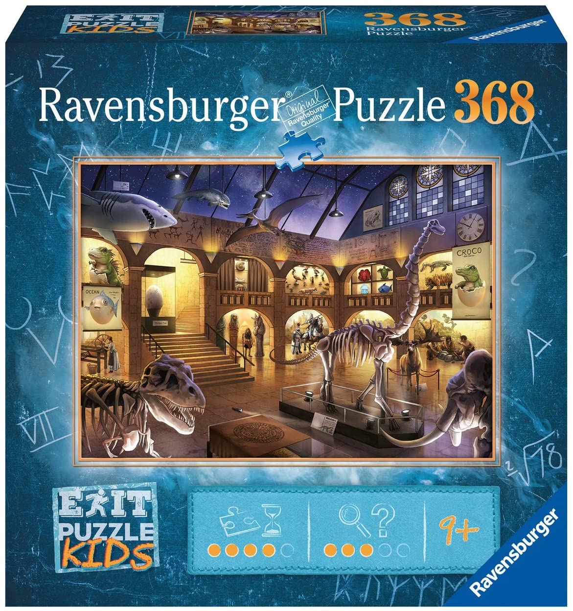 Ravensburger Puzzle Exit Kids Im Naturkundemusuem - Jetzt gibt es das Konzept der Exit Rooms auch als Ravensburger Puzzle! Frei nach dem Motto: Puzzeln, rätseln, lösen. Gelingt es euch, alle Rätsel zu knacken und auch das "letzte" Puzzleteil zu finden? Eine geheimnisumwobene Illustration lässt Puzzler und Spieler in eine mysteriöse Welt eintauchen, in der es den "Exit" zu finden gilt! In der Schachtel befindet sich ein Puzzle mit geheimnisvollen Teilen, einer Anleitung und einem Lösungsumschlag. Packungsinhalt: Jedes EXIT PUZZLE enthält ein detailreiches Puzzle-Motiv mit 368 Teilen, einen Lösungsumschlag und eine Anleitung. Anzahl Puzzleteile: 368 Puzzlegröße: ca. 70 x 50 cm Maße der Verpackung: 22 x 22 x 7 cm Altersempfehlung: ab 9 Jahre Achtung! Nicht für Kinder unter 3 Jahren geeignet. Verschluckbare Kleinteile! Erstickungsgefahr!