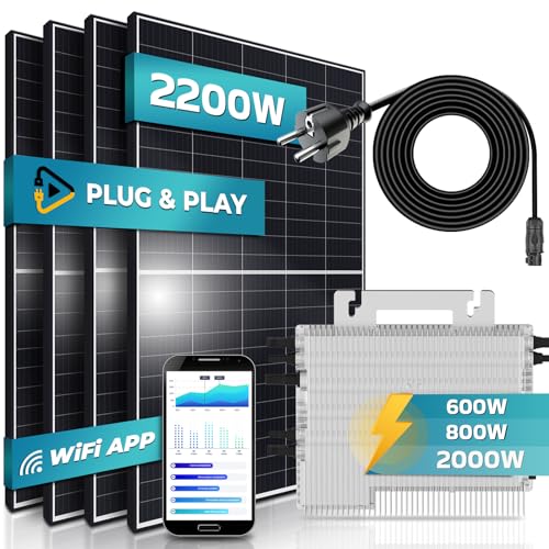 in PV-Anlagen und BalkonkraftwerkeVENDOMNIA Balkonkraftwerk 2200/2000WDEYE 2000W Wechselrichter, 4x550W Solarmodule, Wifi Upgradebar Drosselbar, mit 5m Anschlusskabel, genehmigungsfrei, Mini-PV Anlage, Solarpanel