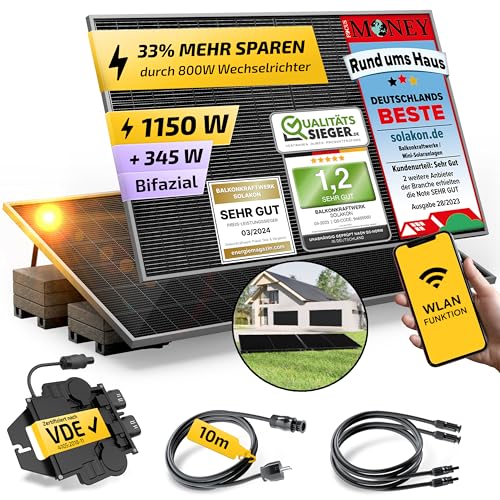 in PV-Anlagen und BalkonkraftwerkeSolakon 1150W Balkonkraftwerk 800W mit Halterung2x 575W Solarmodule, upgradebarer Wechselrichter - Komplettset inkl. 10m Kabel