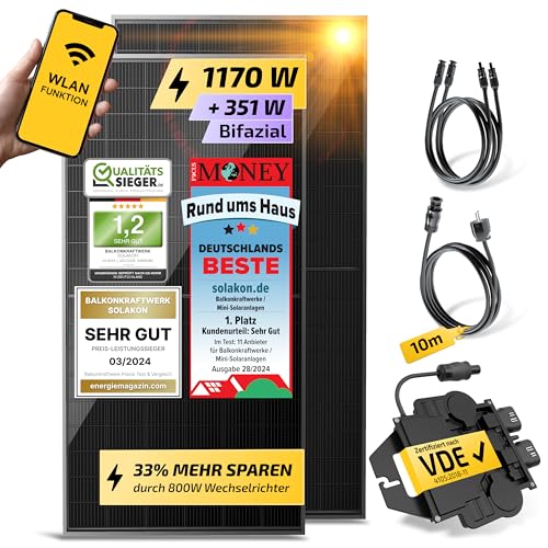 - Das Solakon 1170W Balkonkraftwerk bietet eine effiziente Lösung mit einem upgradebaren Wechselrichter auf 800W, was zu einer Steigerung der Energieeinspeisung um 33% führt