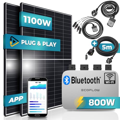 SUNNIVA® Balkonkraftwerk 1100W/800W Solaranlage800W Ecoflow PowerStream Micro Wechselrichter mit Wifi & Bluetooth, 2x 550W Solarmodule (1100W), 5m Kabel, PV - Hohe Effizienz & Jährliche Ersparnisse