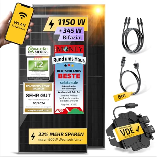 in PV-Anlagen und BalkonkraftwerkeSolakon 1150W Balkonkraftwerk 800W - Photovoltaik Komplettanlage 575W Solarmoduleupgradebarer Wechselrichter 1000W, 5m Kabel