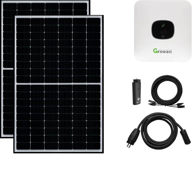 - Lieferumfang: 2 Stück 410 Watt Solarmodul monokristallin Halbzellen, Solarspace, 1 Paar 5 Meter 6 mm² Solarstringkabel zum Wechselrichter, 1 Stück Wechselrichter Growatt MIC 600TL-X inkl. 3 Meter Schukostecker, 1 Stück Wifi Modul zur Internetüberwachung