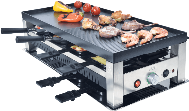 in RaclettesSolis Table Grill 5in1 - RacletteGrill, Wok, Pizza-Grill, Crêpes, für 8 Personen (Raclettepfännchen, Mini-Wok, Spachtel), 1400W, Grillfläche Antihaftbeschichtet, edelstahl, schwarz