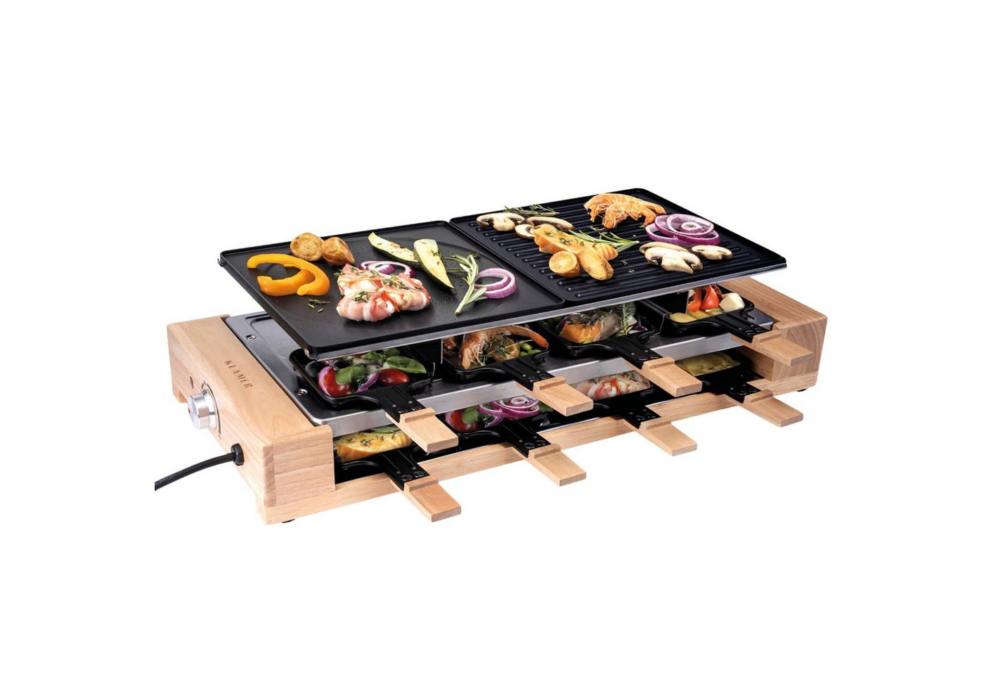 in RaclettesKLAMER Raclette 8 Personen1500W Raclette Grill mit Holzgestell, Raclette mit antihaftbeschichteter Grillplatte, 1500