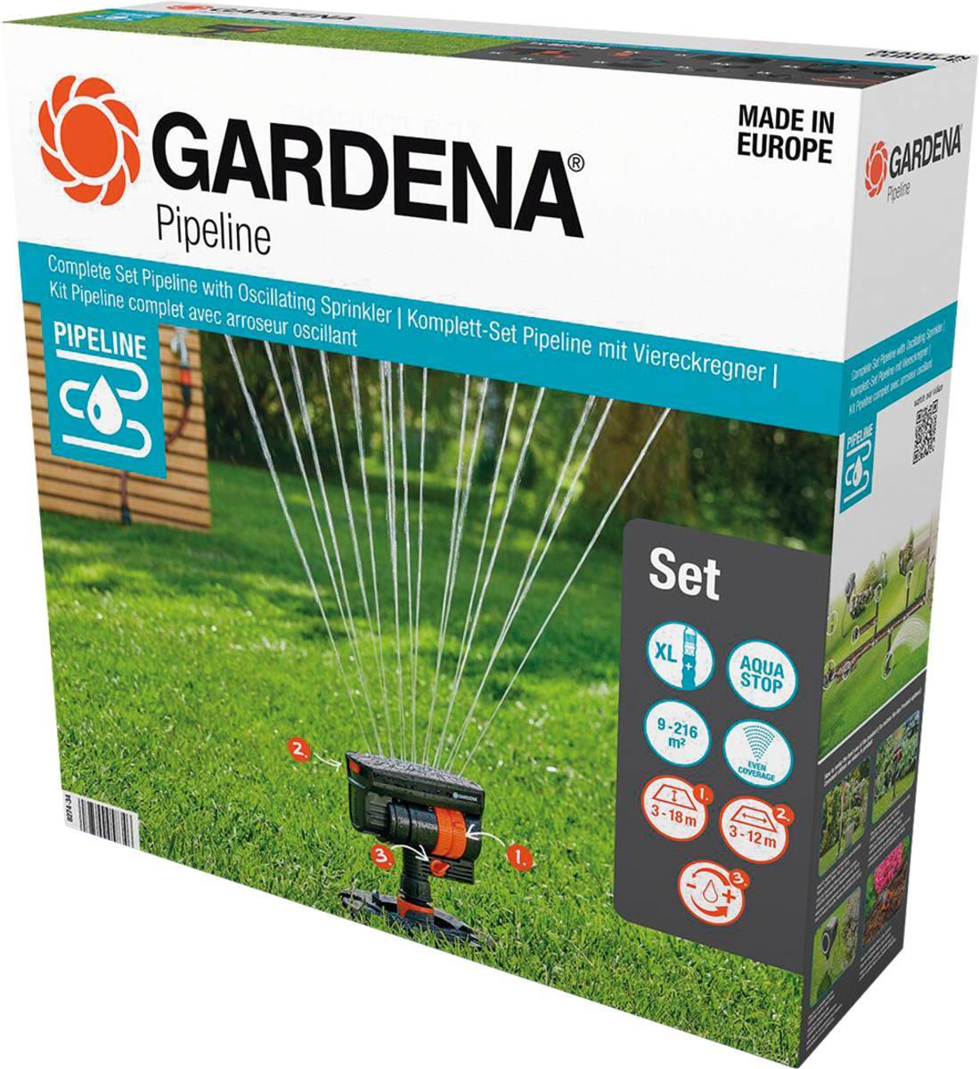 GARDENA Komplett-Set Pipeline Viereckregner Sprinklersystem (8274-34) Schlauchlänge 20 m Anschlussdurchmesser 3/4 Zoll max. Beregnungsfläche 216 m² max. Beregnungsweite 18 m