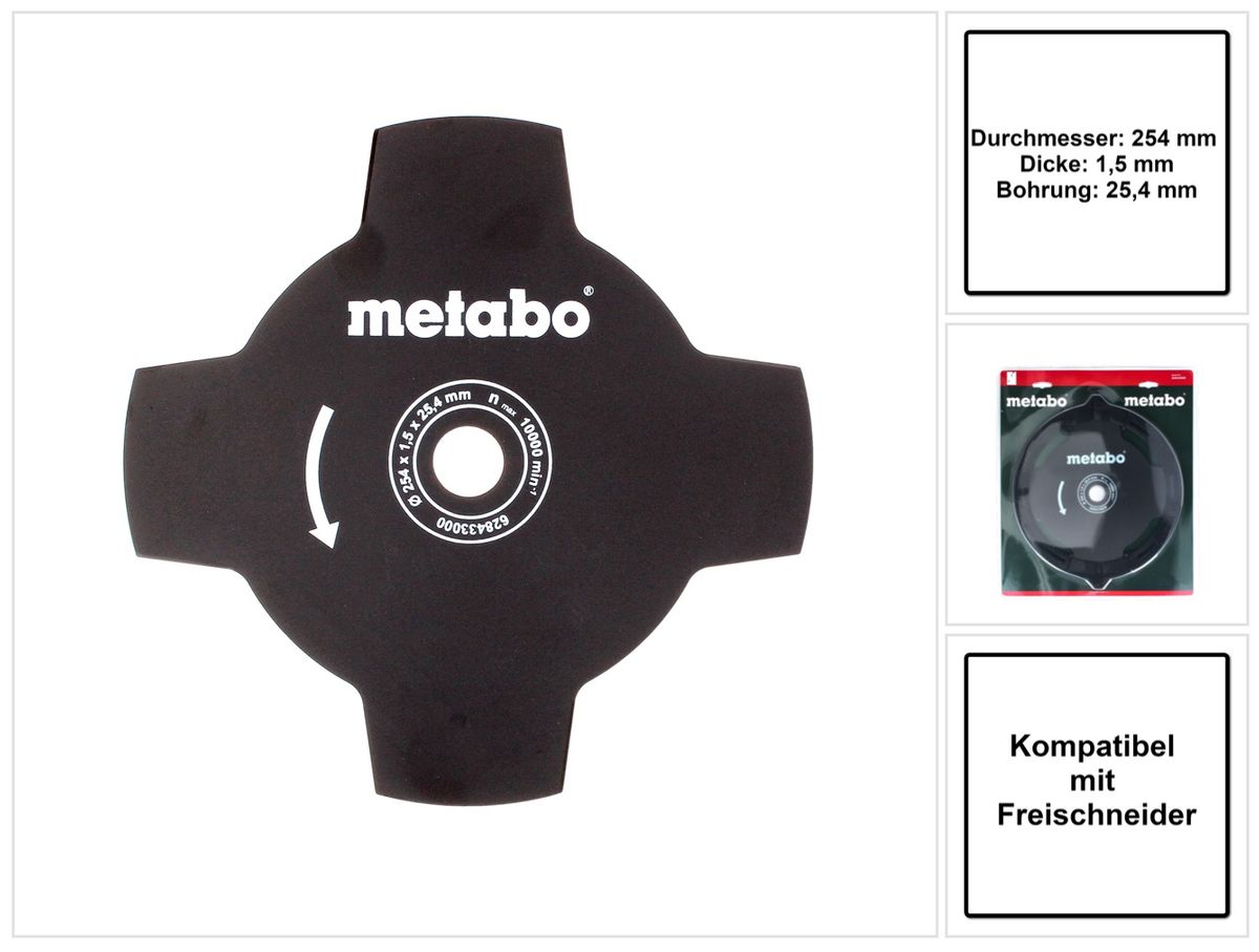 Metabo Grasmesser 4 flügelig für Freischneider ( 628433000 ) 254 x 1,5 x 25,4 mm