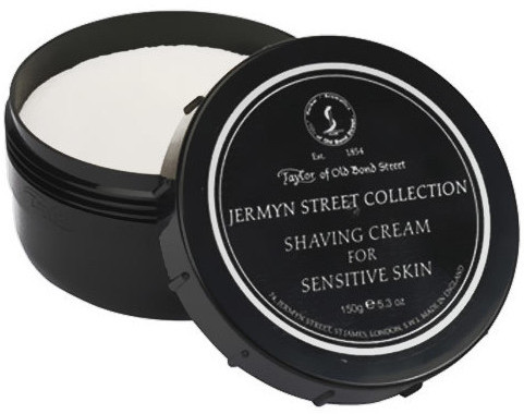 Die Taylor Jermin Street Kollektion Shaving Cream Rasiercreme 150 g ist eine weiche Rasiercreme in einer Plastikdose mit Schraubverschluss und Innendeckel. Die Creme schäumt gut auf und der Schaum ist auf der Haut stabil. Die Rasierklinge gleitet sehr gut. Der Duft der Creme ist dezent und angenehm. Die Rasur ist schonend und zuverlässig.