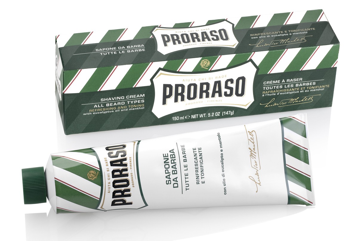 - Die Proraso Green Rasiercreme sorgt für ein sanftes Gleiten des Rasierers und schützt die Haut.