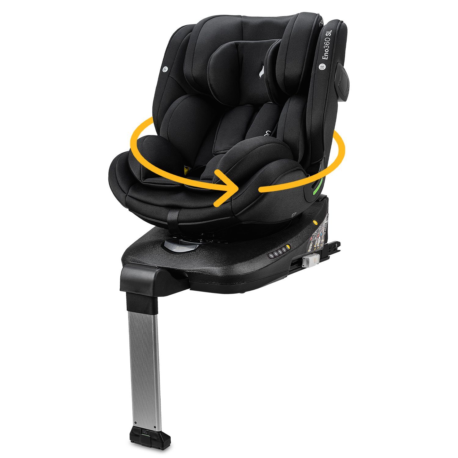 - Die 14-fach höhenverstellbare Kopfstütze und die einfache Anpassung an verschiedene Größenklassen machen den Eno360 SL zu einem praktischen Begleiter für Kinder bis zum Ende der Kindersitzpflicht.