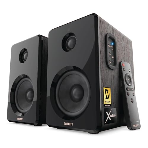 - Entdecken Sie die MAJORITY D40 Bluetooth Regallautsprecher mit leistungsstarkem 60-W-Sound für ein beeindruckendes Musikerlebnis
