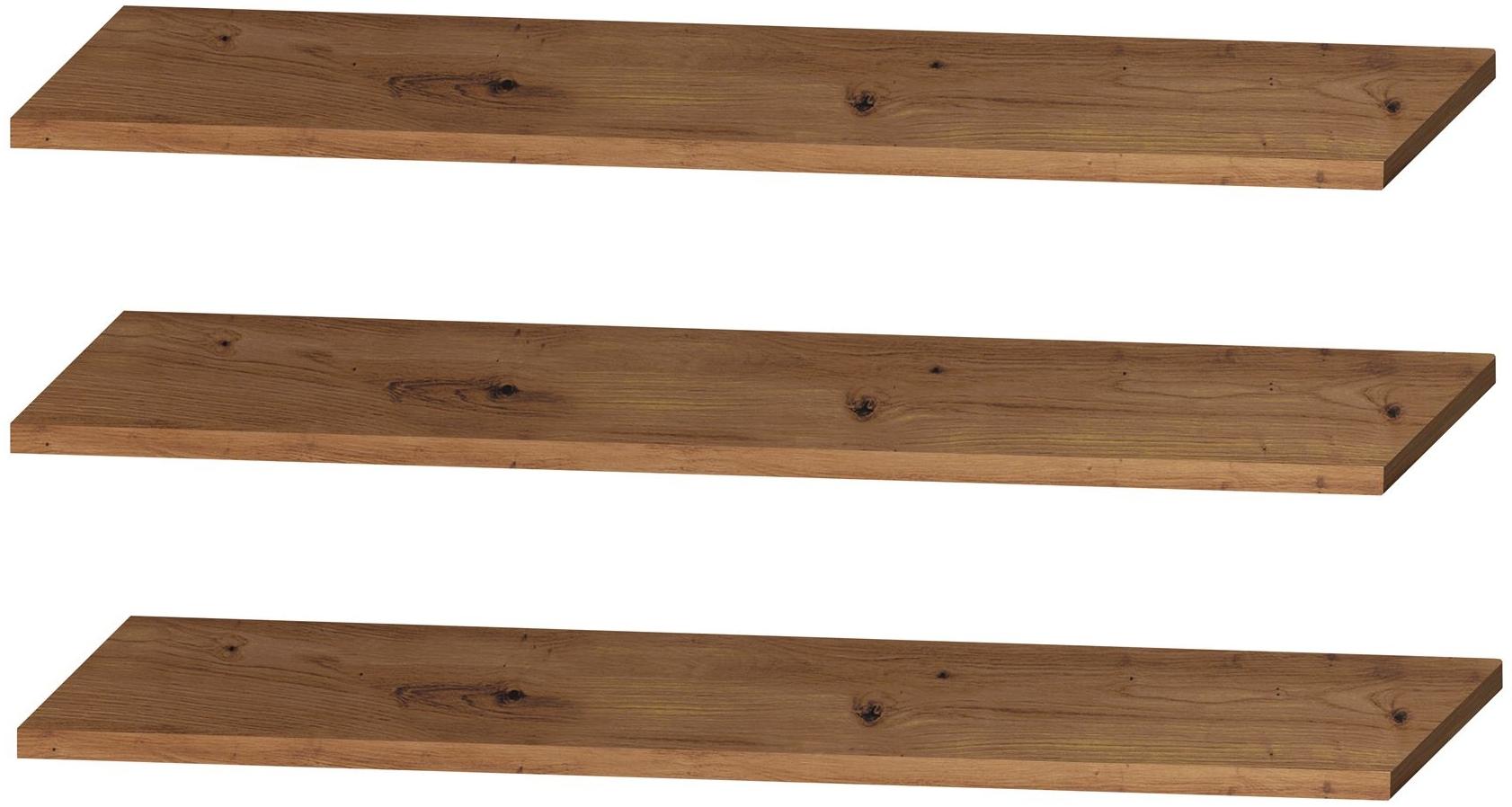 Der Einlegeboden Janet 104 x 3 x 49 cm in Artisan Eiche ist ein moderner und pflegeleichter Einlegeboden aus Holzwerkstoff. Mit seinen Abmessungen von 104 x 3 x 49 cm passt er perfekt zum Kleiderschrank 10262 und überzeugt durch seine hochwertige Verarbeitung und die Melaminharz-beschichtete Oberfläche. **Highlights** - Modernes Design - Hochwertige Materialien - Einfacher Aufbau - Passend für Kleiderschrank 10262 - Pflegeleichte Oberfläche **Produkteigenschaften** - Abmessungen: 104 x 3 x 49 cm - Material: Holzwerkstoff - Farbe: Artisan Eiche - Oberflächenbeschichtung: Melaminharz - Qualität: Hochwertige Verarbeitung **Lieferumfang** - 3 Einlegeböden für Kleiderschrank 10262