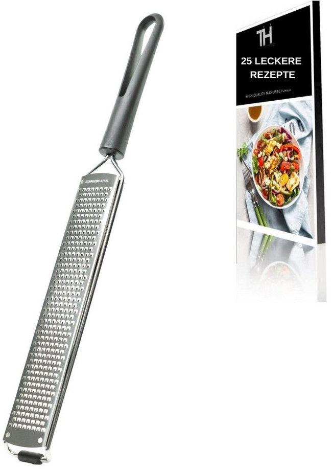 | Name | Thiru Multireibe Premium mit Edelstahl Klingen und rutschfestem Fuß inkl. Schutzelement, Fein, Messerscharfe Klingen, inklusive Schutzelemt und Rezeptbuch |