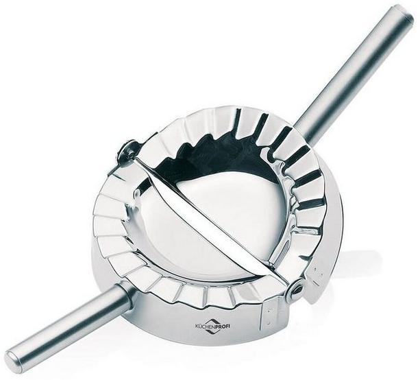 | Beschreibung | Der Ravioliformer MIDI von KÜCHENPROFI ist das ideale Küchenaccessoire für Pastafreunde. Mit seiner praktischen Doppelseite können Sie Teigtaschen mühelos ausstechen und verschließen. Ob Ravioli, Maultaschen, Piroggen oder Mini-Calzone – dieser vielseitige Former ist für viele internationale Spezialitäten geeignet. Hergestellt aus rostfreiem Edelstahl, ist er langlebig und leicht zu reinigen. **Highlights** - Doppelseitige Nutzung: Ausstechen und Verschließen in einem Schritt - Vielseitig einsetzbar: Ideal für Ravioli, Maultaschen, Piroggen und mehr - Hergestellt aus rostfreiem Edelstahl: Langlebig und pflegeleicht - Kompakte Maße: Passt in jede Küche - Leichtes Gewicht: Nur 0,126 kg für einfache Handhabung **Produkteigenschaften** - Länge: 22,5 cm - Breite: 11 cm - Höhe: 5 cm - Durchmesser: 10 cm - Gewicht: 0,126 kg - Material: Edelstahl **Lieferumfang** - 1x Küchenprofi 10 cm Ravioli-Former |