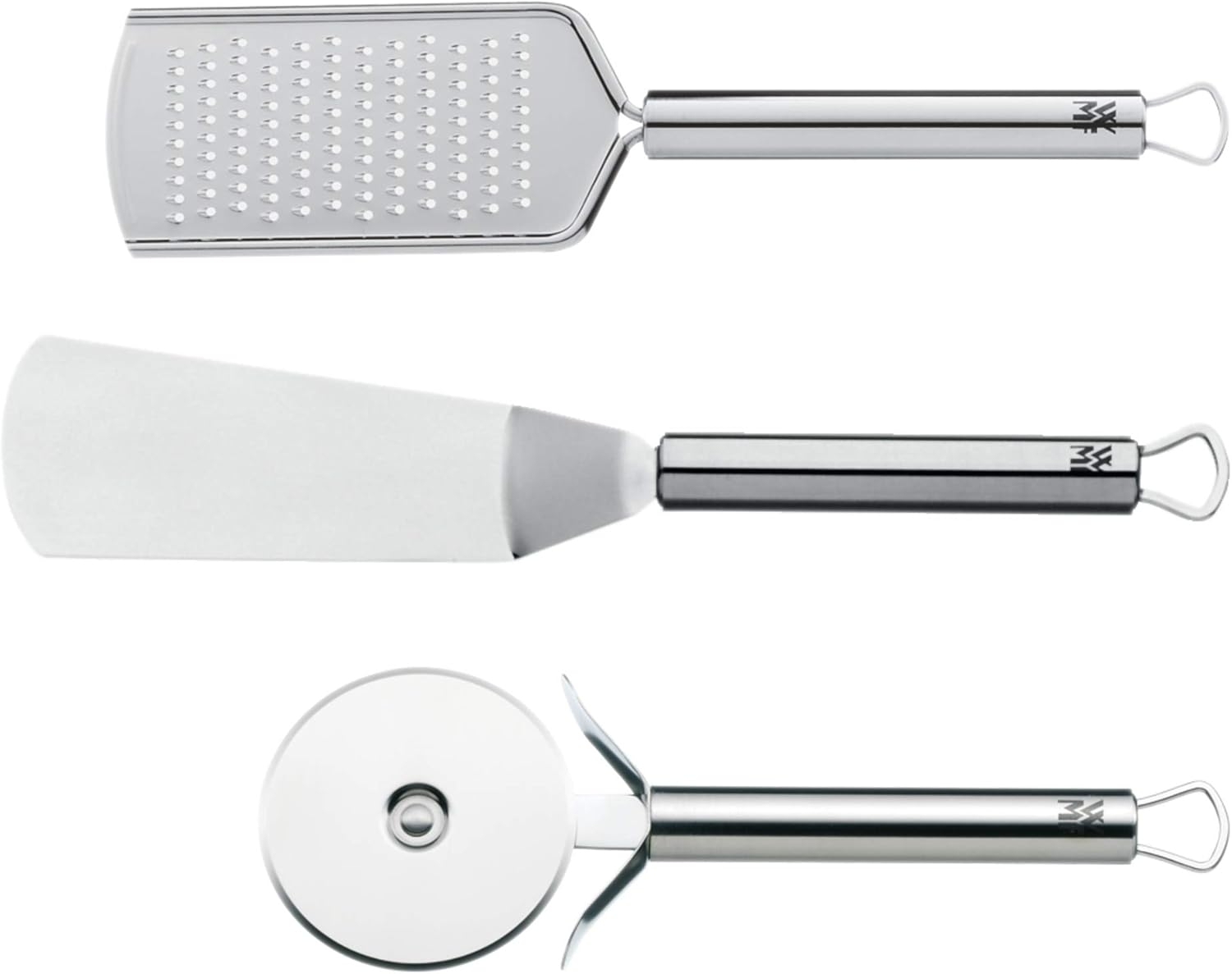 in ReibenWMF Pizza-Set 3-teilig. Pizzaschneider Winkelpalette Käsereibe Cromargan Edelstahl teilmattiert spülmaschinengeeignet