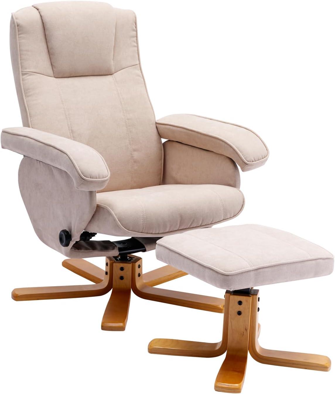 SVITA Charles Relaxsessel Hocker Sessel Beige Fernsehsessel Drehsessel Polyester Holz