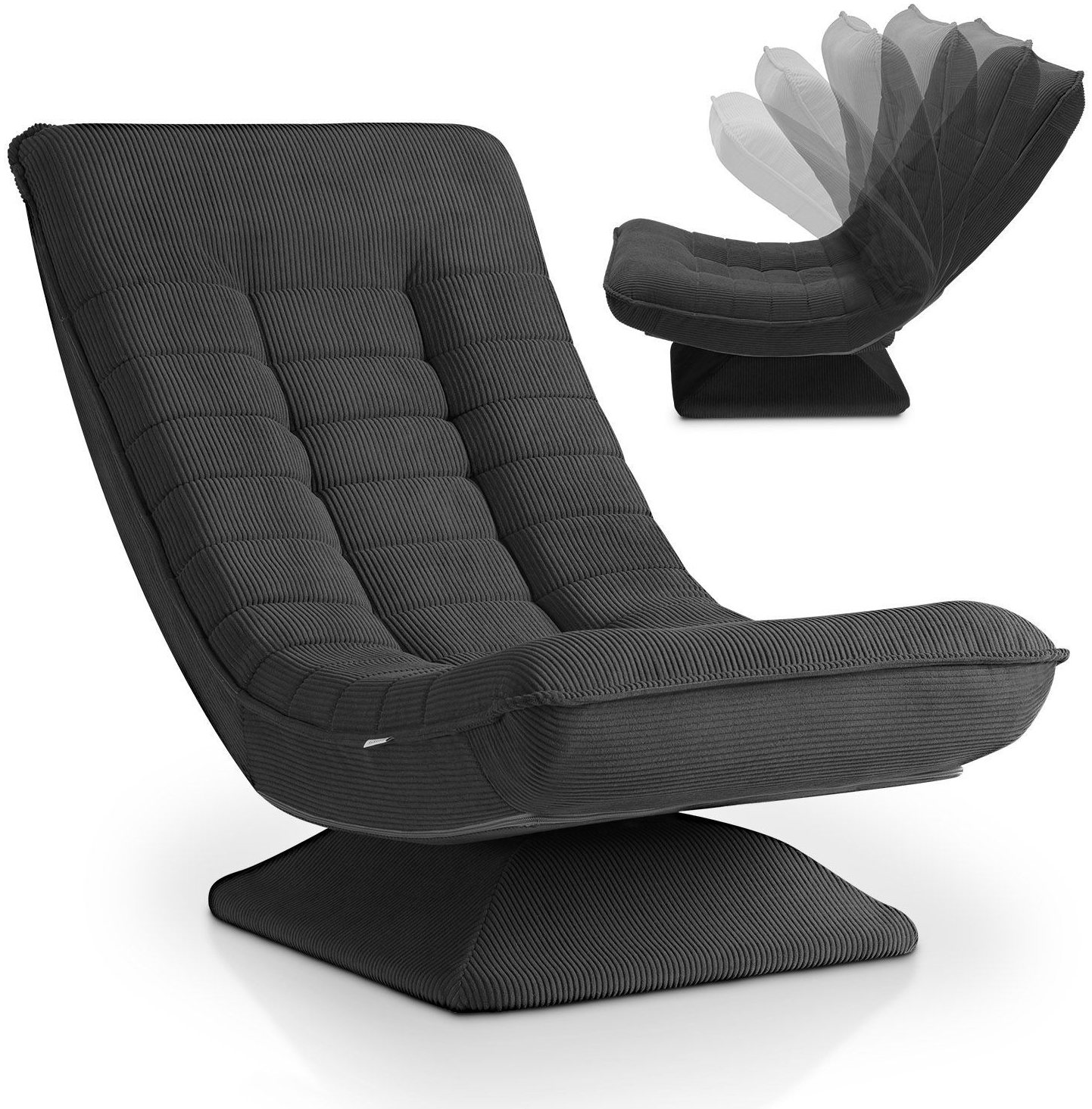 | Name | Juskys Relaxsessel Korsika - ergonomisches Design, 360° drehbar, hoher Komfort, klappbar, modernes Design, 5-lagige Polsterung, Cord-Bezug - Grau |