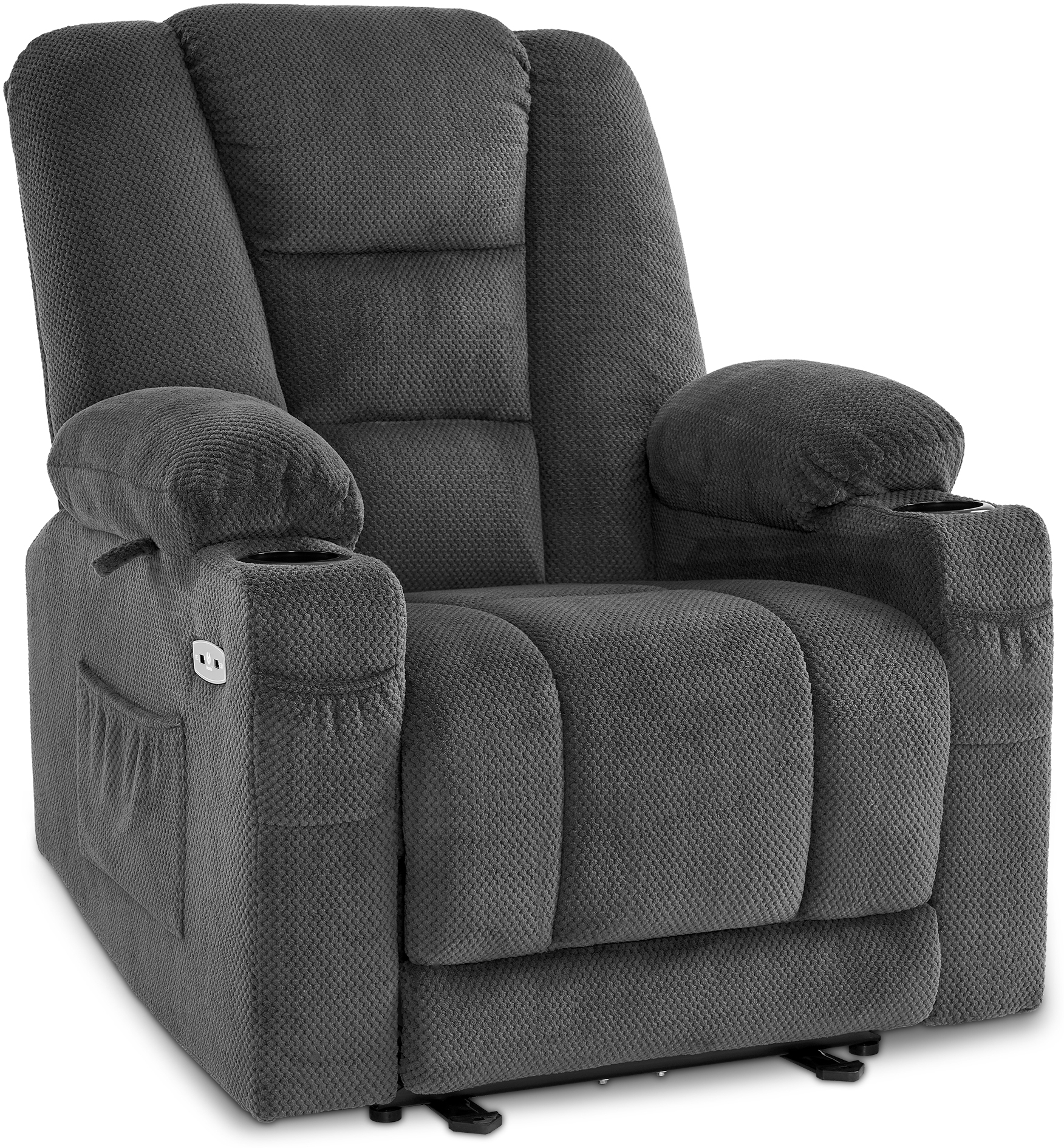 MCombo Relaxsessel mit LiegefunktionMassage & Wärmefunktion, USB & Getränkehalter, Stoff Dunkelgrau, 94 x 90 x 105 cm