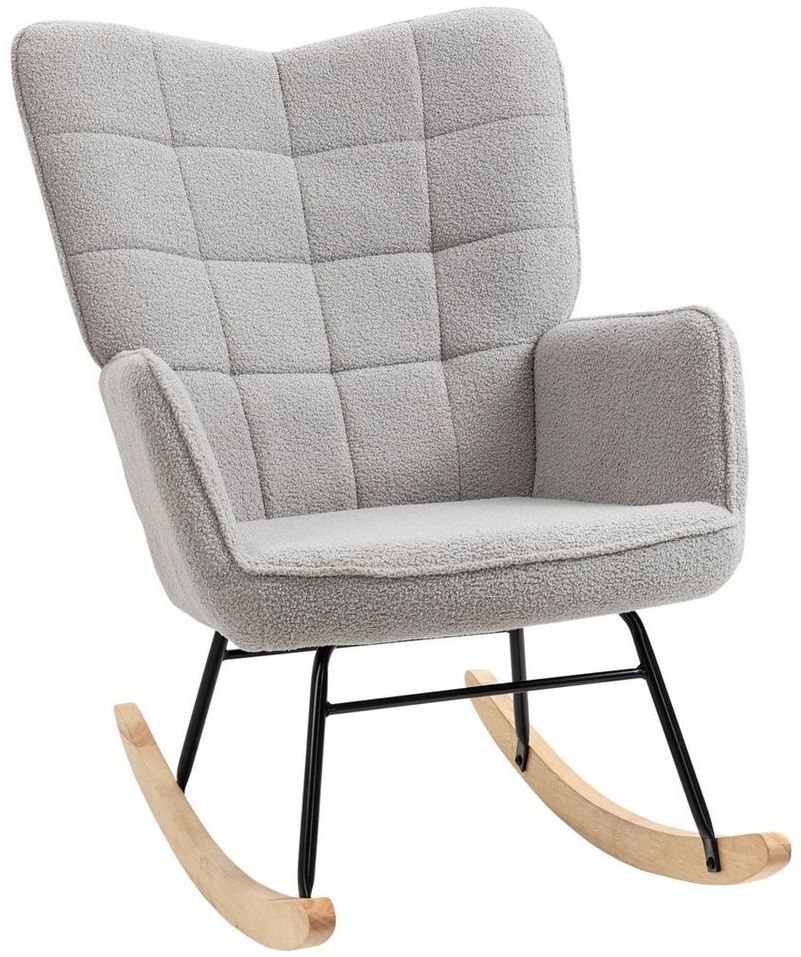 in RelaxsesselHOMCOM Schaukelstuhl Schwingsessel Akzentstuhl Wohnzimmersessel Relaxsessel Schaukelsessel für SchlafzimmerBelastbarkeit bis 120 kg, Berbervlies, Hellgrau 71 x 92 x 101 cm