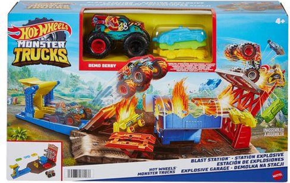| Name | Hot Wheels Monster Trucks-Explosive Garage Spielset mit HW Demo Derby und kaputtgehenden Autos |
