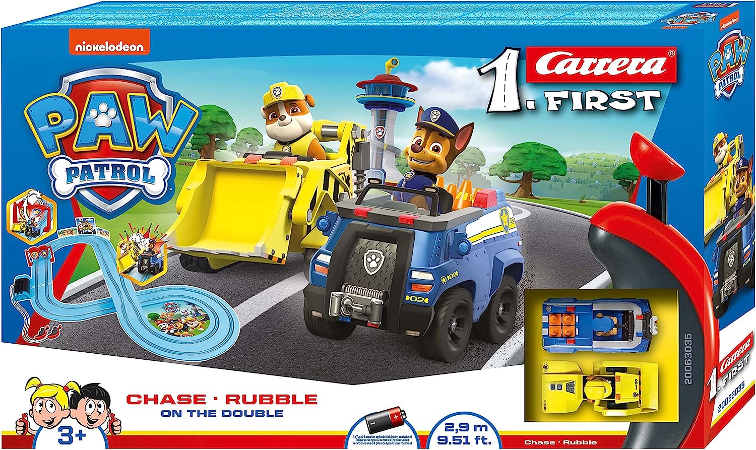 - Die Carrera FIRST PAW PATROL On the Double Rennstrecke verwandelt das Kinderzimmer in ein spannendes Rennparadies mit den beliebten Charakteren aus der Nickelodeon-Serie.