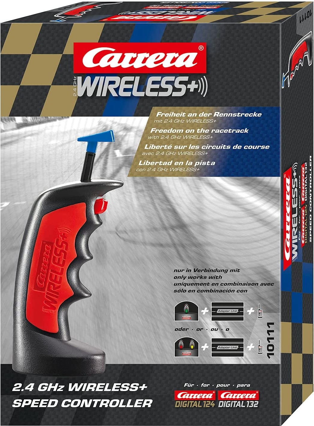 Erlebe kabelloses Rennbahnvergnügen exklusiv für Carrera DIGITAL 124 und Carrera DIGITAL 132 mit dem neuen Carrera 2. 4 G Hz WIRELESS+! Alle Vorteile von Carrera WIRELESS+ im Überblick: 2. 4 G Hz WIRELESS+ Funktechnologie, für bis zu 6 Fahrer, ultraleichter, kabelloser Handregler, Anschluss der Ladestation direkt an der Carrera Bahn, bis zu 15m Reichweite, störungsfrei und frequenzunabhängig durch Frequenzhopping, 8 Stunden Spielzeit im Dauerbetrieb möglich, Akkubetrieben durch Lithium Polymer Akku. Inhalt: 1x 2. 4 G Hz WIRELESS+ Speed Controller, 1 Austauschkopf, Bedienungsanleitung, Lithium Polymer Akku. Warnhinweis: Achtung! Nicht für Kinder unter 36 Monaten geeignet. Achtung! Enthält verschluckbare Kleinteile. Erstickungsgefahr. Bei Sortimenten und Großpackungen gilt der angegebene Preis pro Stück. Eine Auswahl ist nur bedingt möglich!