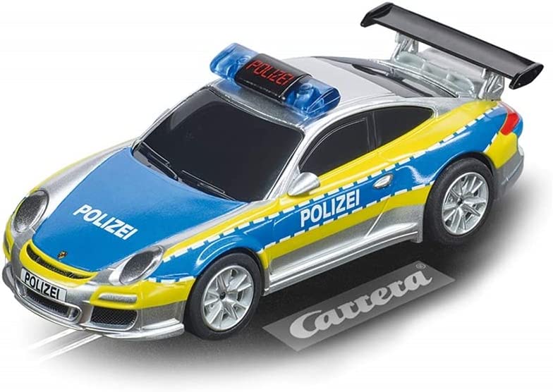- Der Carrera GO!!! Porsche 911 GT3 „Polizei“ ist detailgetreu nach dem Originalmodell gestaltet und kombiniert klassisches Design mit einer auffälligen Polizei-Lackierung in Silber und Blau.