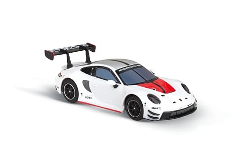 - Der Carrera Hybrid, Porsche 911 GT3 R Rexy im Maßstab 1:50, besticht durch sein elegantes weißes Design und die detailgetreuen Front- und Rücklichter, die für ein realistisches Erscheinungsbild sorgen