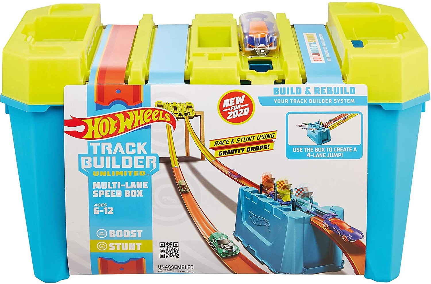 | Name | Hot Wheels GLC95 - Track Builder Unlimited Mehrspurige Speed Box mit 4-spuriger Startschranke für Stunts, Spielzeug ab 6 Jahren |