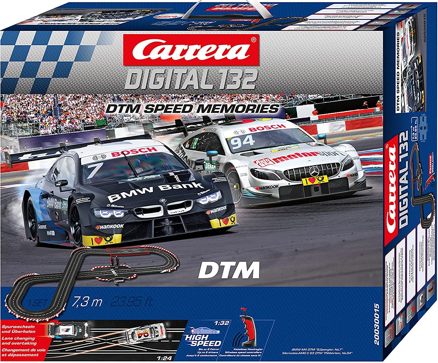 | Name | Carrera 20030015 Digital 132 'DTM Speed Memories' Autorennbahn-Set mit kabellosen Handregler, 7,3 Meter Streckenlänge, ab 8 Jahren |