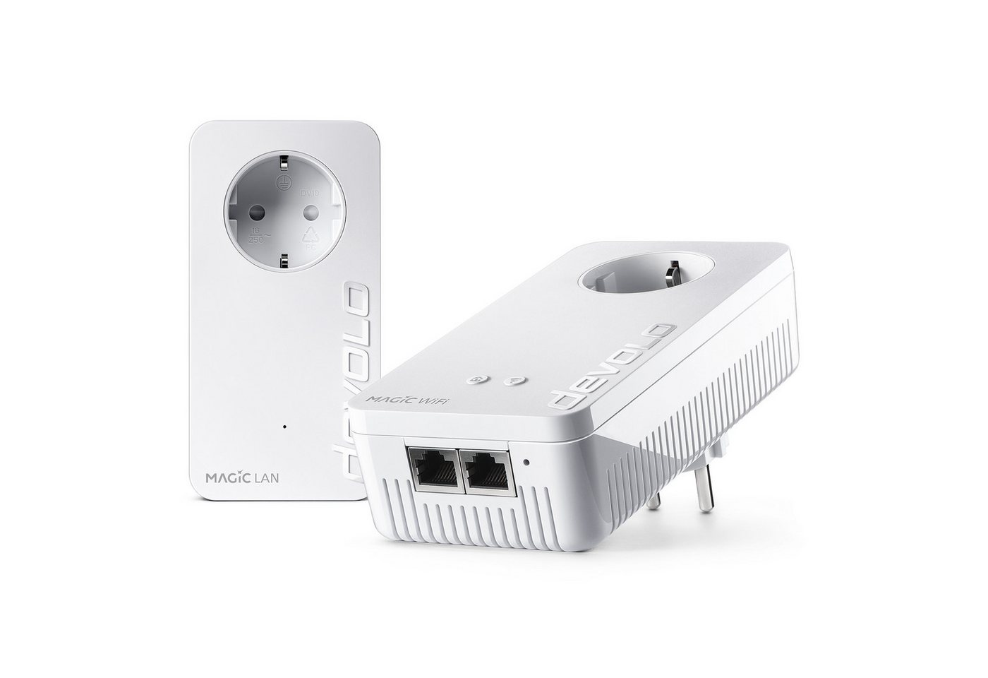- Das DEVOLO Magic 2 WiFi 6 next Starter Kit besteht aus zwei Adaptern, die ein leistungsstarkes Powerline-Netzwerk aufbauen