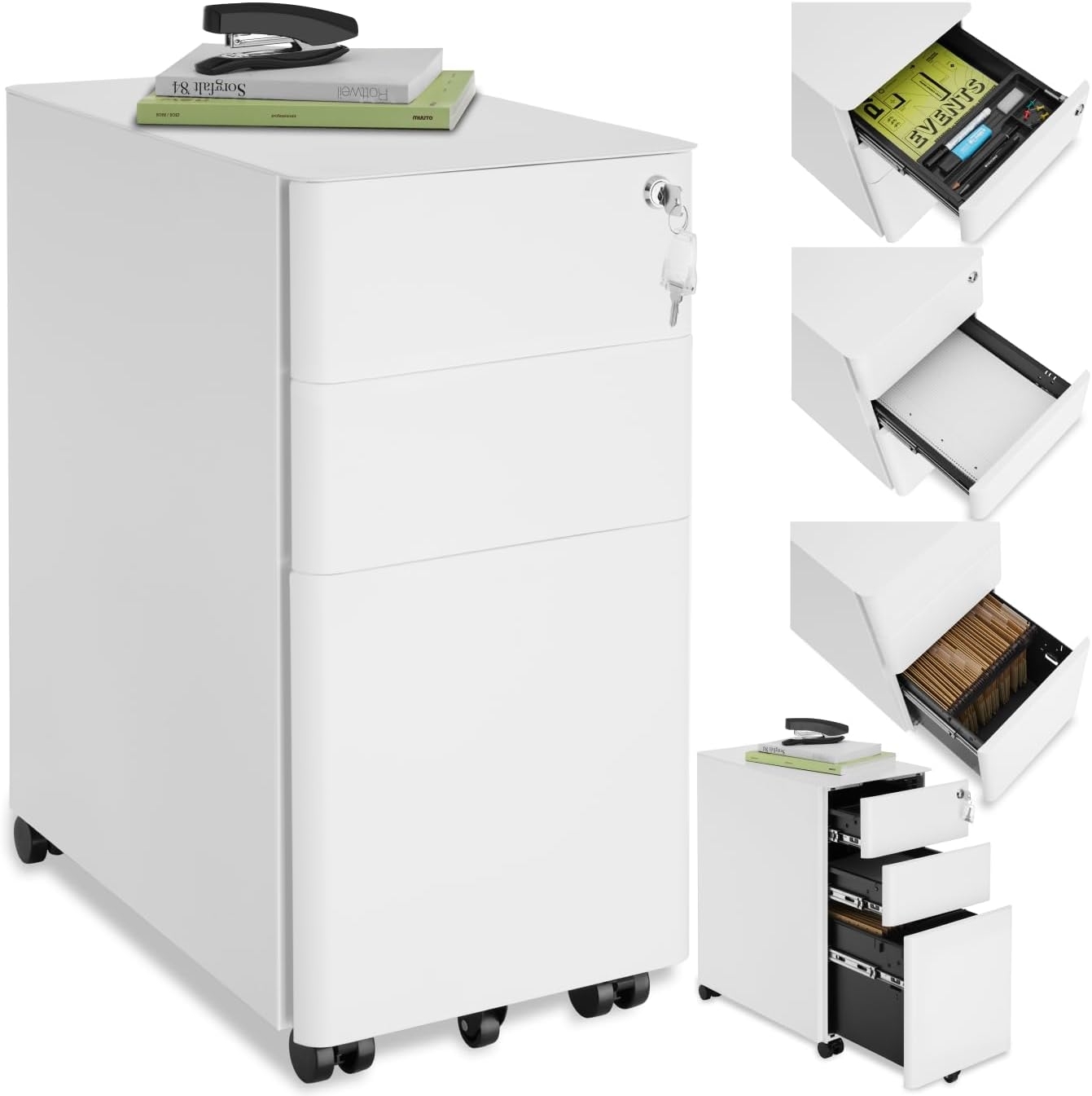 tectake Rollcontainer Aktenrollschrankaus pulverbeschichtetem Stahl