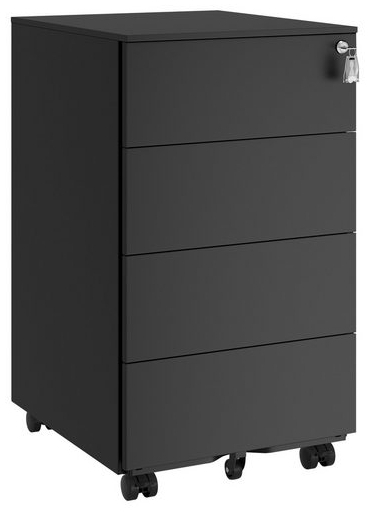 **Alles an einem Platz:** Wenn auf Ihrem Tisch im Arbeitszimmer oder Büro stets Chaos herrscht, wird dieser Rollcontainer mit 4 Schubladen Ihnen helfen, Ordnung zu schaffen. Der Schrank verfügt zudem über einen abnehmbaren Organizer **Stärke und Kapazität:** Ist Ihr Büro Ihr zweites Zuhause? Die Stahlkonstruktion dieses Aktenschranks ist stabil genug, um all Ihre Dokumente und Büroutensilien unterzubringen; jede Schublade ist mit bis zu 15 kg belastbar **Praktische Schubladen:** Die Schubladen sind ohne Griffe ausgestattet. Sie können aber sie von der Seite öffnen. Dank der robusten Vollauszüge können Sie sie vollständig herausziehen. Zudem lassen sich alle Schubladen mit einem Schloss abschließen **Bereits vormontiert:** Dieser Büroschrank wird vormontiert geliefert, sodass Sie keine Zeit für eine komplizierte Montage verschwenden müssen. Entscheiden Sie lediglich, ob Sie die 5 Räder (2 mit Bremse) anbringen wollen oder nicht **Was Sie bekommen:** Einen Rollcontainer mit 4 Schubladen für Ihre Büroutensilien, 4 Rollen für mehr Flexibilität, einer extra Rolle für zusätzliche Stabilität und einem Schloss, das Ihre privaten Dokumente vor fremden Händen schützt Egal ob Sie zu Hause oder im Büro arbeiten, ein ordentlicher Arbeitsplatz hat einen großen Einfluss auf Ihre Konzentration und Produktivität. Durch diesen Aktenschrank mit 4 Schubladen von SONGMICS schaffen Sie Ordnung an Ihrem Arbeitsplatz und optimieren gleichzeitig Ihre Arbeitszeit. **Robust und praktisch** Dokumente, Schreibwaren, persönliche Gegenstände, alles, was Sie bei der Arbeit benötigen, findet einen eigenen Platz in diesem Rollcontainer. Jede der 4 großen Schubladen ist mit bis zu 15 kg belastbar und die Vollauszüge sorgen für mehr Komfort, wenn Sie die Schubladen öffnen sowie schließen. Die Stahlkonstruktion ist so stabil, dass Sie diesen Aktenschrank über viele Jahre hinweg nutzen können. **Wichtige Details** Das hochwertige Schloss schützt Ihre Akten vor neugierigen Blicken. Schieben Sie diesen Rollcontainer einfach an die gewünschte Stelle, wenn Sie beispielsweise gerne im Wohnzimmer arbeiten. Ein treuer Begleiter, welcher Ihnen jederzeit zur Verfügung steht! **Produktdetails:** - Farbe: Tintenschwarz - Material: Stahl - Größe: 45,1 x 39 x 69,3 cm (T x B x H) - Gewicht: 20 kg - Max. Belastbarkeit jeder Schublade: 15 kg **Lieferumfang:** - 1 x Rollcontainer mit 4 Schubladen - 1 x Zubehörpaket - 1 x Anleitung"