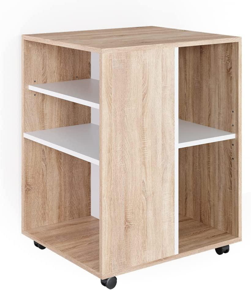 Dieser Rollcontainer ist ein wahres Multitalent! Er kann als Aktenschrank zum Verstauen von wichtigen Dokumenten dienen, als Schreibtischschrank für Büromaterial oder als Druckertisch für Ihren Drucker. Auch als Beistelltisch mit Rollen ist er äußerst praktisch und durch sein funktionelles Design passt er in nahezu jede Einrichtung. Die höhenverstellbaren Einlegeböden bieten reichlich Stauraum und dank der Räder ist der Rollcontainer leicht im Raum zu bewegen. Mit diesem Modell haben Sie das perfekte Möbelstück für Ihr Homeoffice oder Arbeitszimmer gefunden. Es ist sogar in verschiedenen Ausführungen erhältlich, um Ihren individuellen Bedürfnissen gerecht zu werden. Gönnen Sie sich diesen Rollcontainer und erleichtern Sie sich den Arbeitsalltag! --- **Technische Details:** **Farben:** Sonoma, Weiß **Abmessungen:** 59 x 72 x 53 cm (BxHxT) **Material:** Spanplatte, 16 mm **Oberfläche:** Melaminharzbeschichtung **Artikelgewicht:** 25.21 kg **Artikelgewicht inkl. Verpackung:** 26.2 kg --- LIEFERUMFANG: Rollcontainer, Montageanleitung, Montagematerial