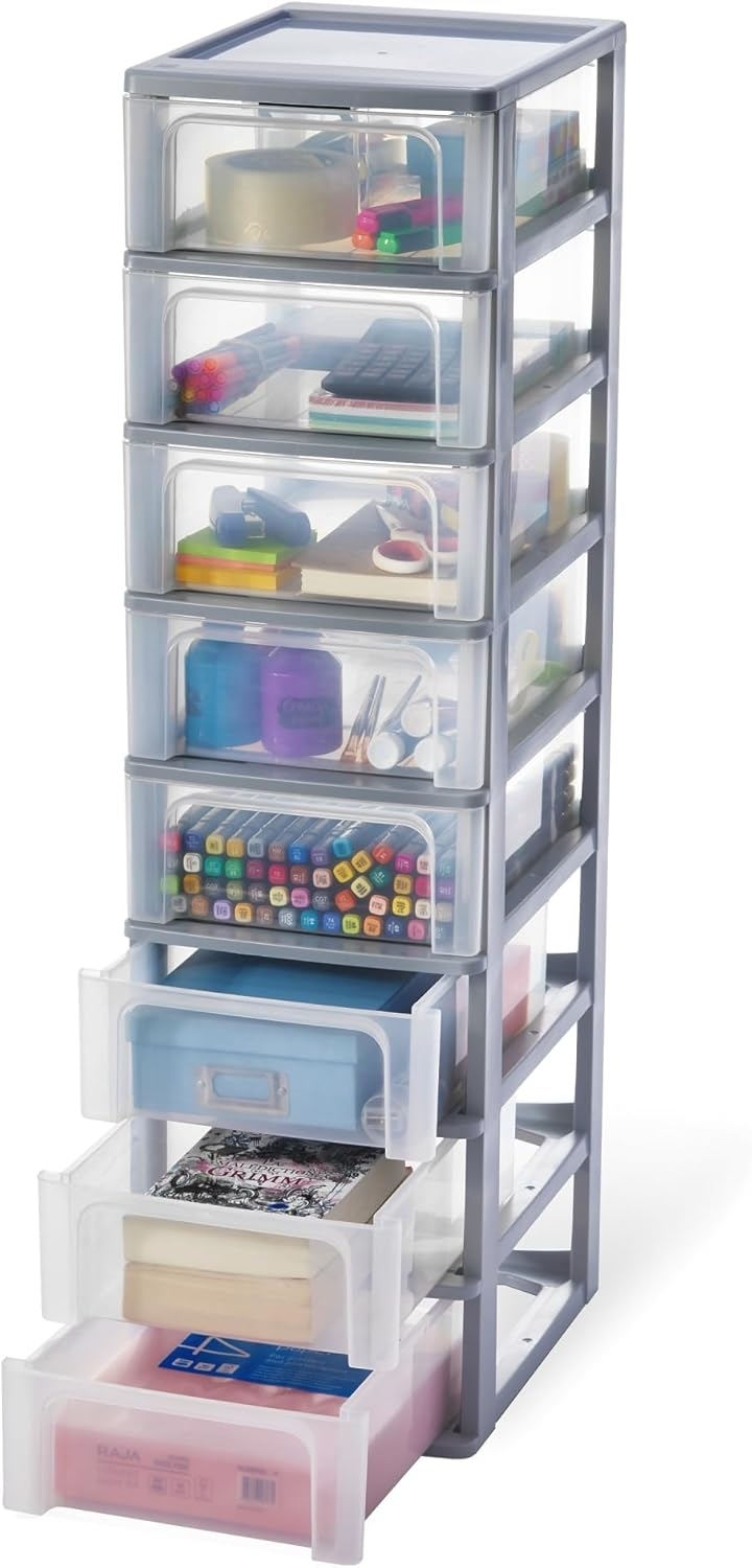 | Name | Amazon Basics, Schubladenschrank, Schubladencontainer, 8 Schubladen mit 7 L, Format A4, durchsichtige Schubladen, Büro, Wohnzimmer - Organizer Chest OCH-2008 - Grau |