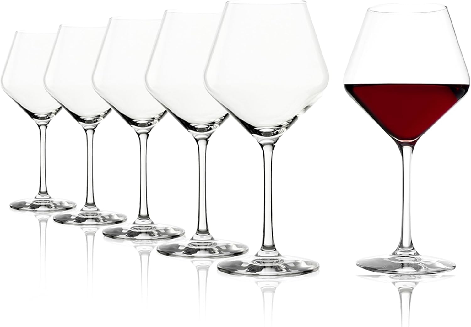 - Der Burgunderkelch Revolution von Stölzle Lausitz zeichnet sich durch eine gradlinige, stark konisch ausgeprägte Form aus.