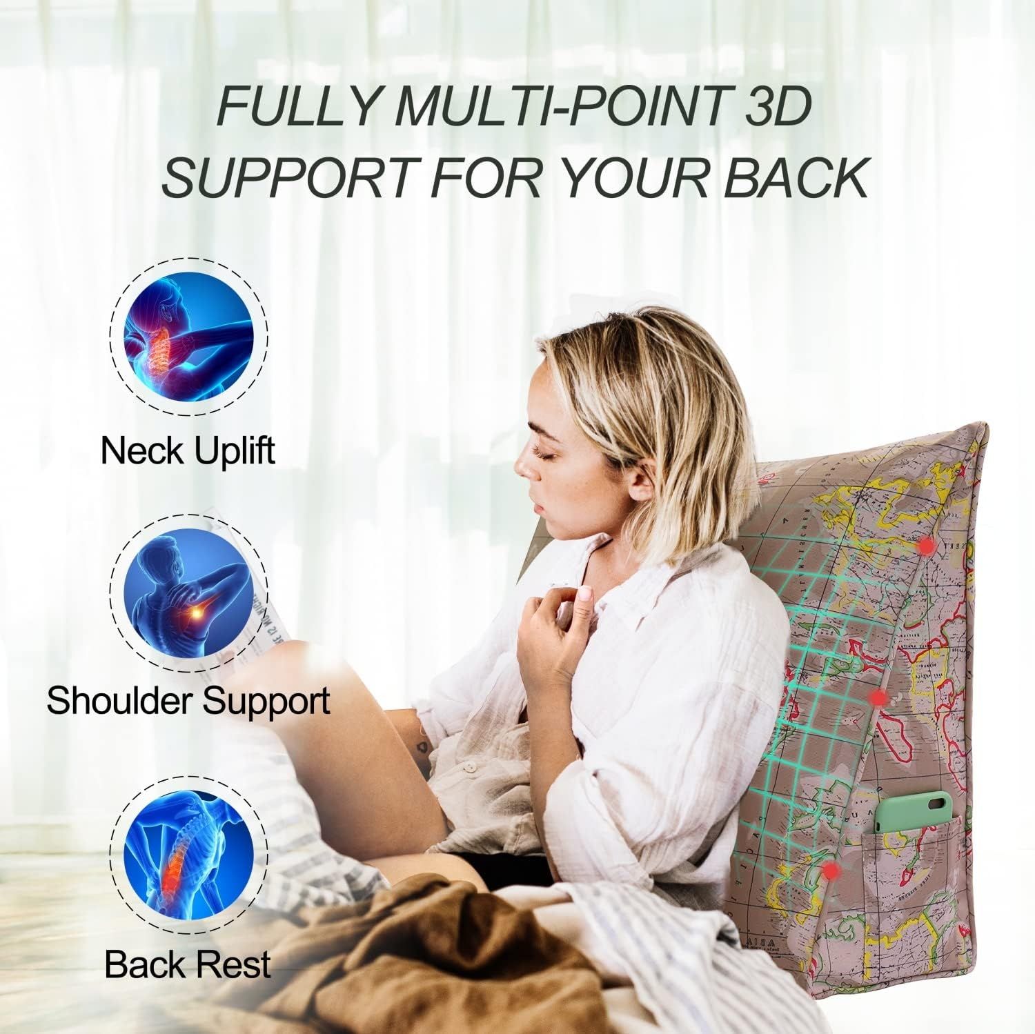 in RückenkissenVERCART Lesekissen aus 100 % BaumwolleGroßes Dekoratives Keilkissen, Dreieckiges Bettruhekissen, Beinkissen für Couch oder Tiefes Sofa, Braune Karte, 60cm