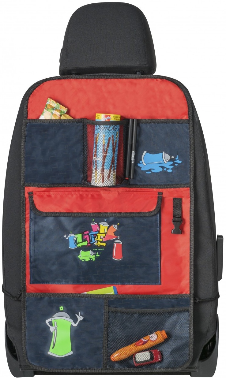 - Der Walser Kinder Organizer Graffiti blau ist speziell für die Rücksitze von Autos konzipiert.