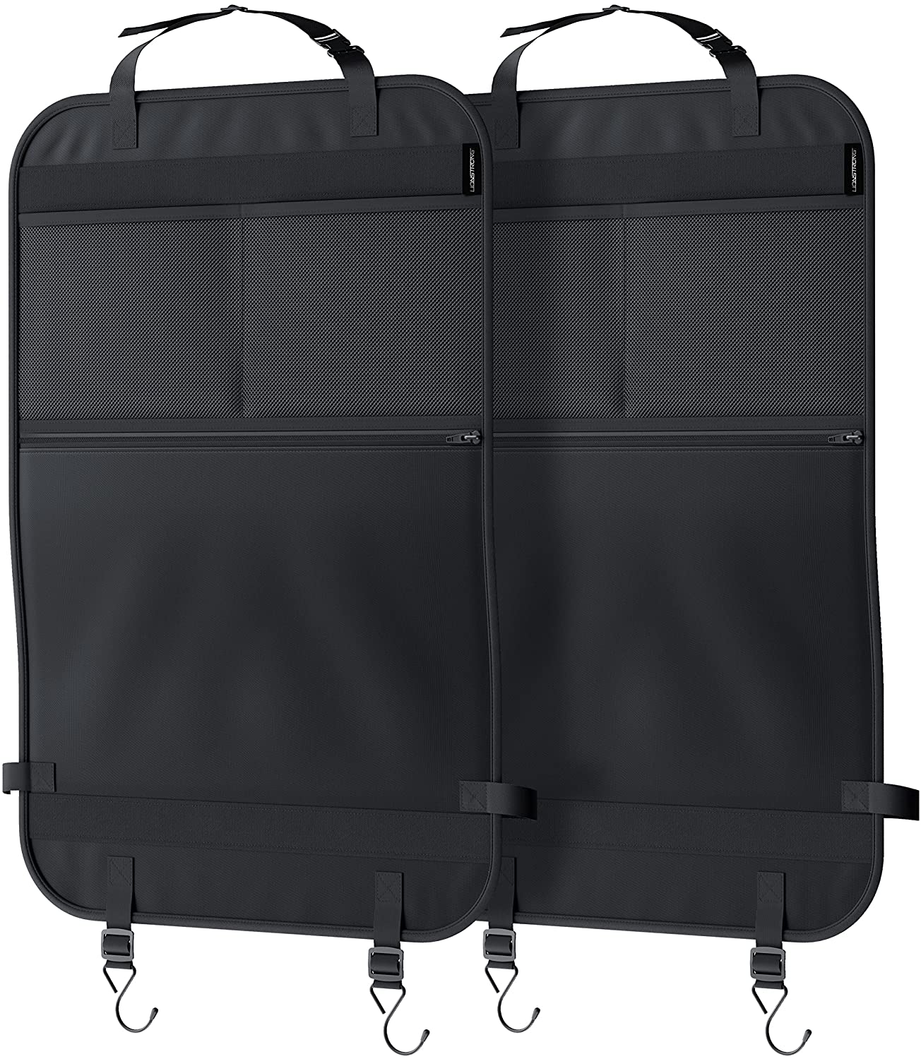 LIONSTRONG Rücksitz Organizer zum Schutz ihrer AutositzeRückenlehnenschutz aus wasserdichtem Stoff (Doppelpack schwarz)