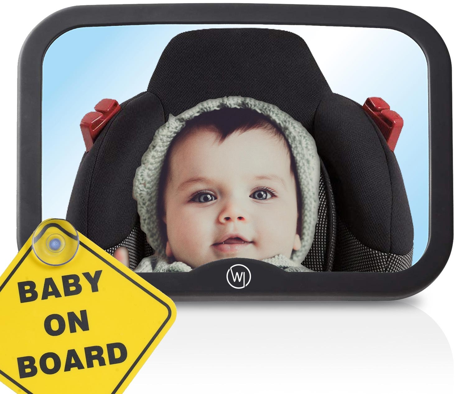 Wicked Chili Auto Baby Spiegel mit Baby on Board SchildRücksitzspiegel bruchsicher XXL Sichtfeld 21,5 x 14,5 cm