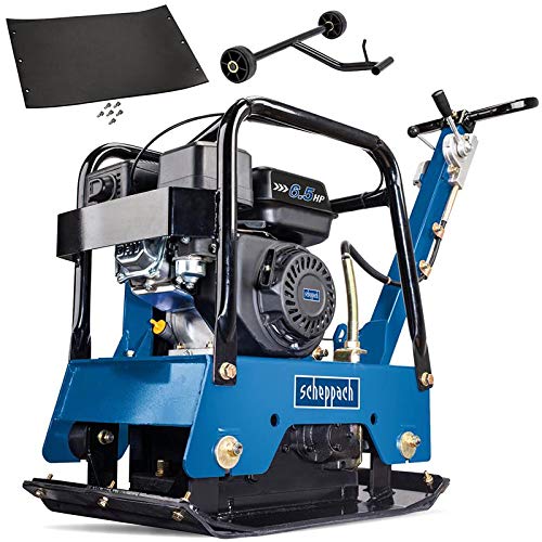 Scheppach HP2500S Benzin-Rüttelplatte - 6,5 PS | Verdichtungstiefe: 40 cm | Vorlaufgeschwindigkeit: 25 m/min | inkl. Gummimatte und Fahrvorrichtung