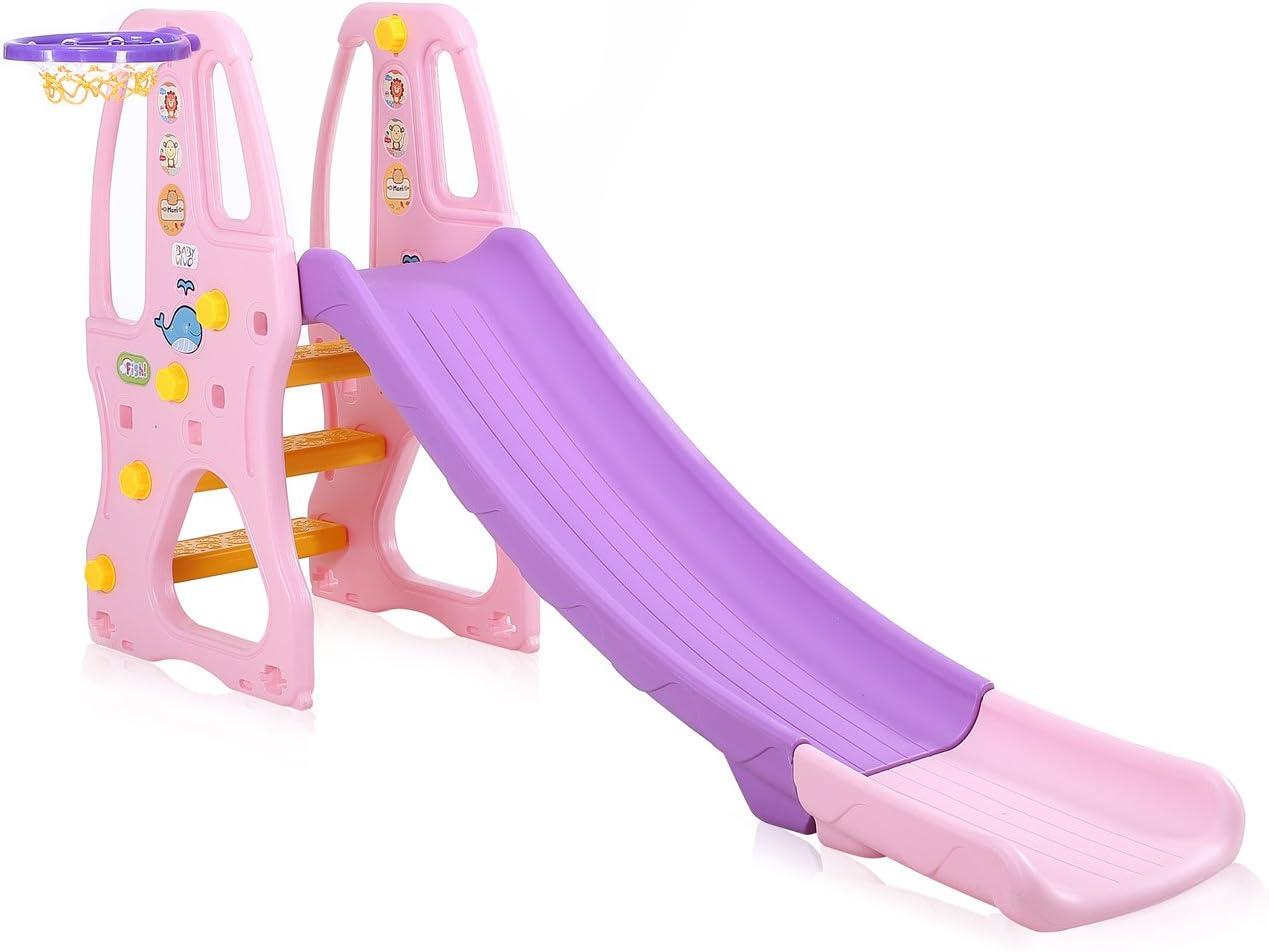 Baby Vivo 'Kinderrutsche / Rutsche mit Basketballkorb'185 x 76,5 x 98,2 cm (LxBxH), ab 2 Jahren, bis 50 belastbar, lila/rosa