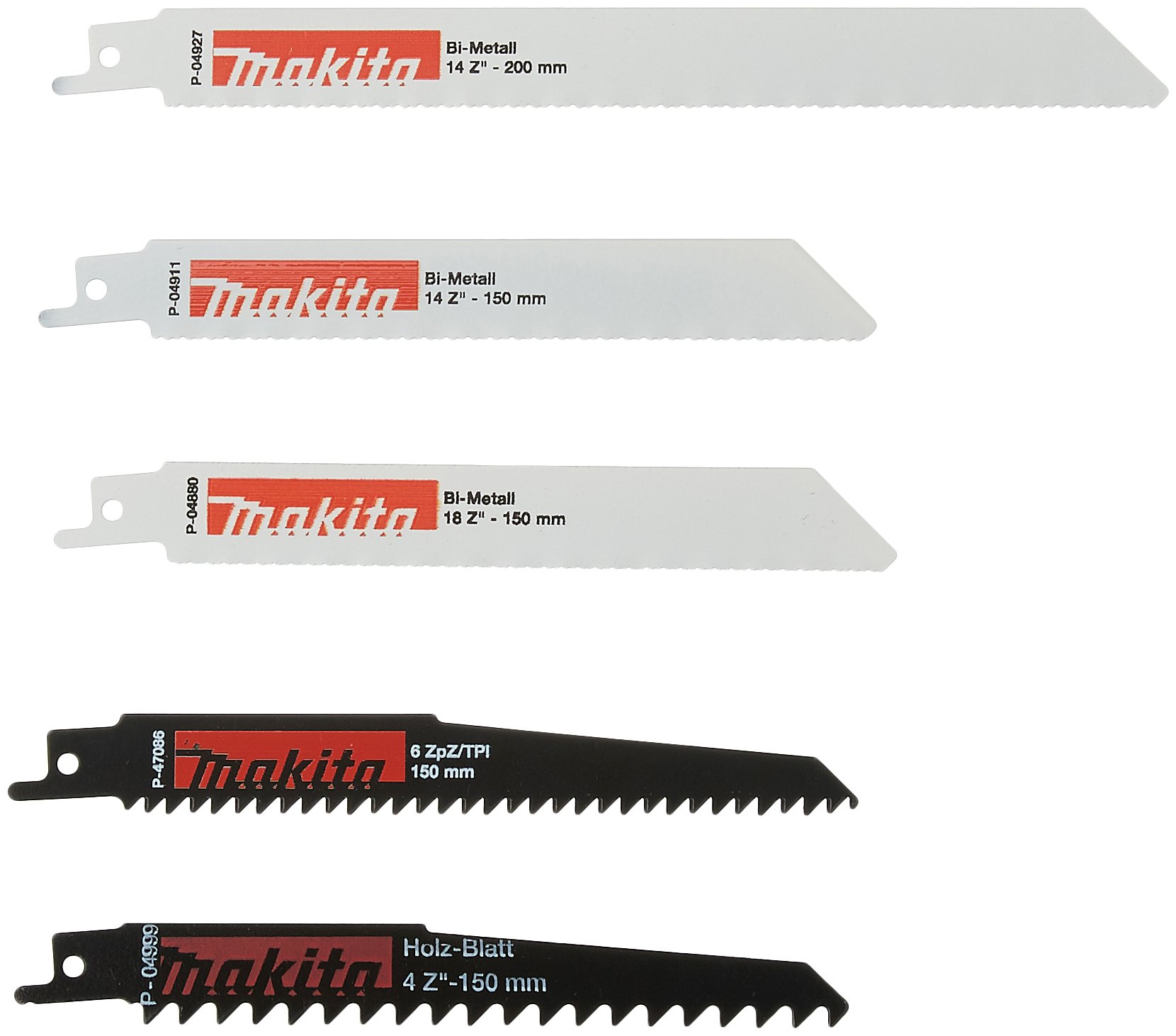 - Das Makita P-83967 Säbelsägeblätter-Set ist ideal für wechselnde Arbeitsbedingungen und ermöglicht gezielte Schnitte in Holz und Metall.