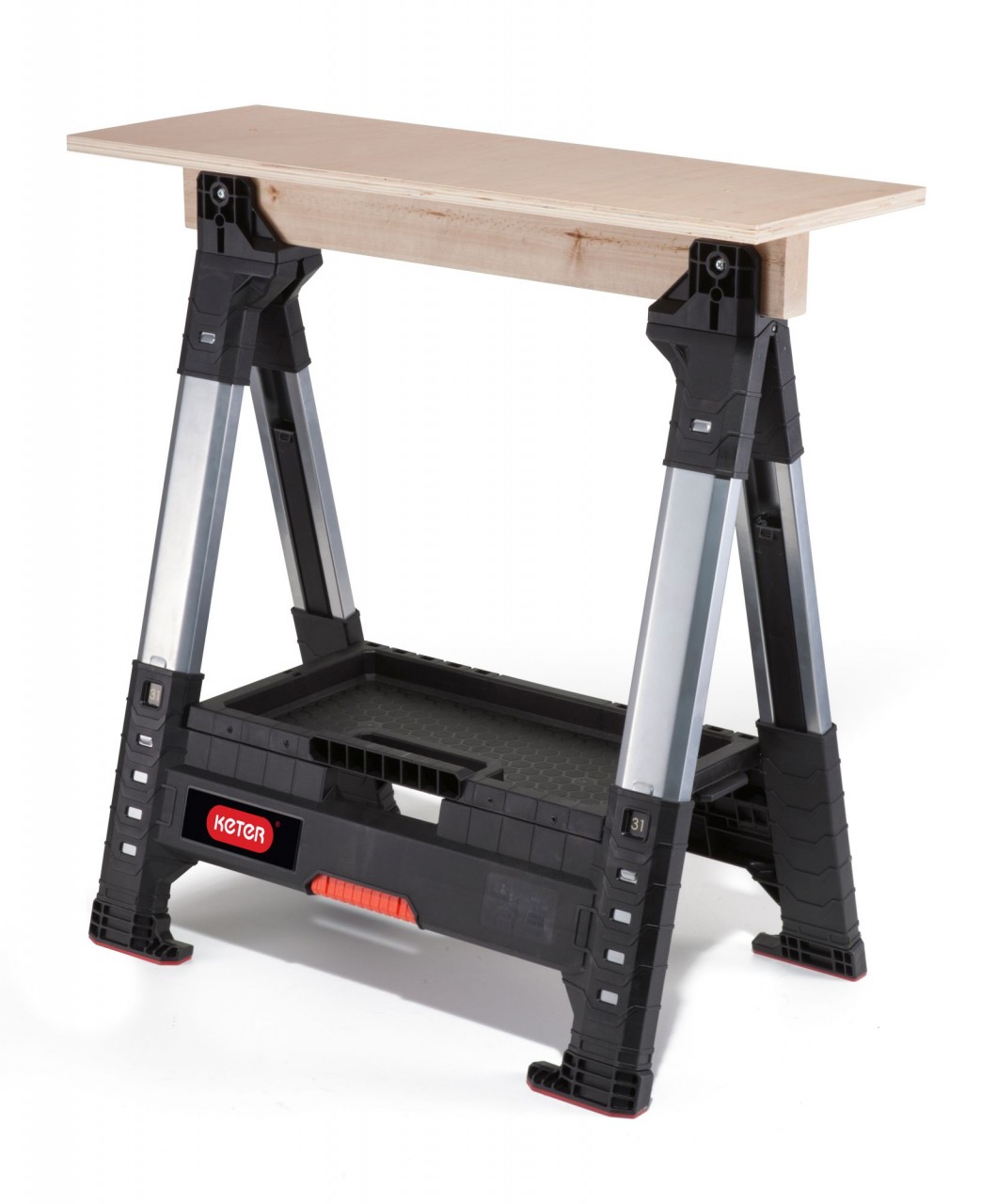 - Der Keter Sägebock Lumber Jack verfügt über ein klappbares und platzsparendes Design, das eine einfache Lagerung ermöglicht.