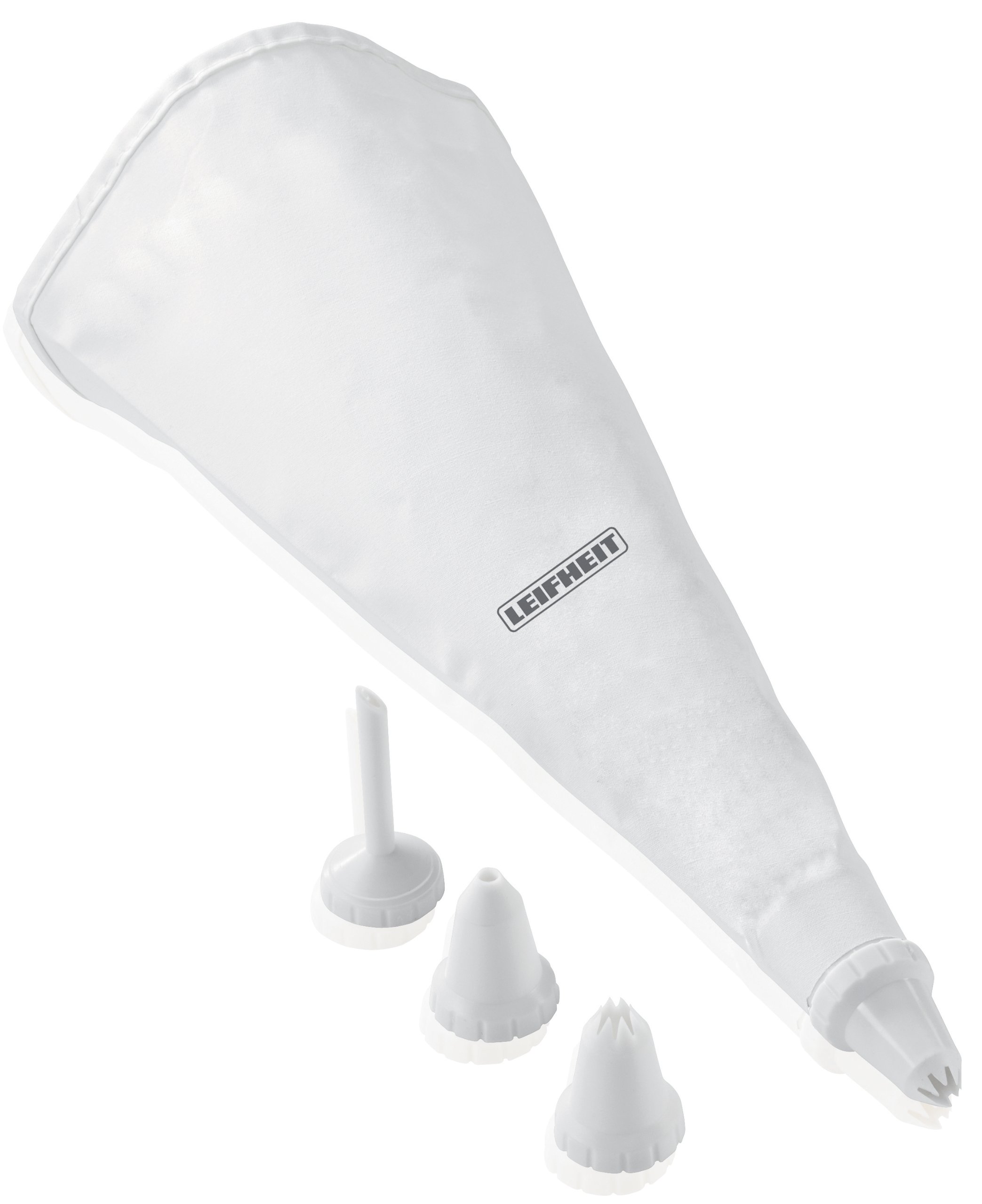 in SahnespenderLeifheit Spritzbeutel-Set inkl. 4 Tüllenaus spezial beschichteter Baumwolle, reiß- und kochfest, Teigspritze zum Backen und Dekorieren, Sahnespritze, Backzubehör, Tortenspritze, weiß
