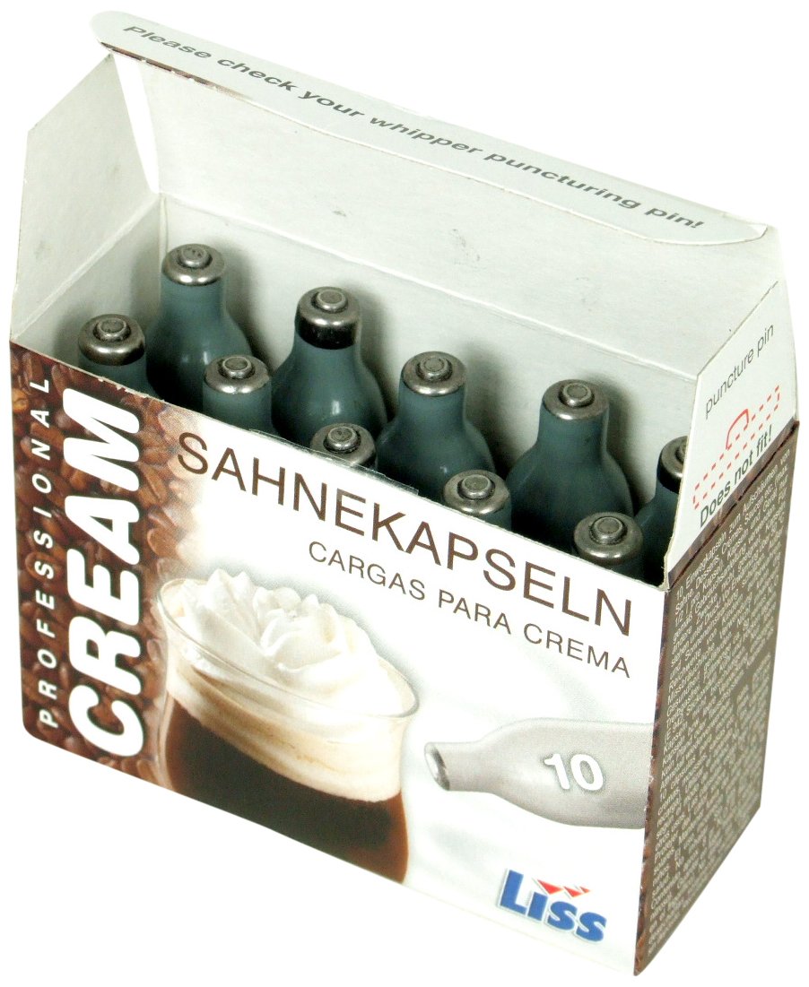 | Fassungsvermögen in l | - | 7,5 g N2O pro Kapsel | 0.25L | 0,5 | 0.5 | - | - | - | - | - | 0.2 | - | 0,5 | - | - | - | - | - | - | - | - |